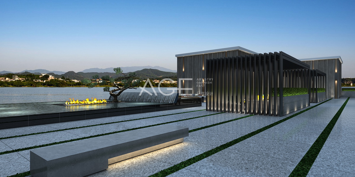 天臺(tái)整體設(shè)計(jì)簡(jiǎn)單大方,現(xiàn)代中式與周?chē)笞匀坏慕Y(jié)合更顯得人文的美。四周瞭望,有山有水,近處天臺(tái)大理石加點(diǎn)綠草設(shè)計(jì),幾處用條狀元素設(shè)計(jì)的休息廳,讓空間視覺(jué)顯得更加華麗而有檔次。