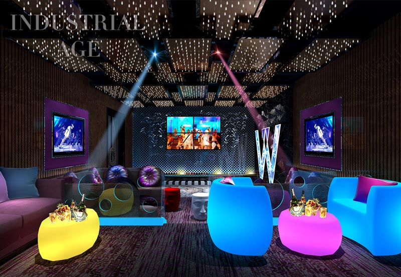 隨著KTV的不斷發(fā)展,KTV主題風(fēng)格彰顯已經(jīng)開(kāi)始拋棄了傳統(tǒng)金銀飾的奢華風(fēng)格,丟棄浮華,創(chuàng)造一種似曾相識(shí)又耳目一新的空間,這樣表達(dá)出了音樂(lè)的視覺(jué)效果和呈現(xiàn)追求時(shí)尚娛樂(lè)的風(fēng)格,并且?guī)ЫoKTV設(shè)計(jì)領(lǐng)域新穎獨(dú)特的風(fēng)尚,全新演繹了新KTV裝修空間設(shè)計(jì)概念,也造就了客戶的輝煌。KTV作為休閑娛樂(lè)場(chǎng)所的代表,不可避免的,成為各階層、各年齡層的首選,舒緩壓力、釋放情緒、娛樂(lè)休閑等等。當(dāng)然,在這樣的娛樂(lè)空間中,抽煙、飲酒是免不了的,所以,在KTV設(shè)計(jì)包房中,這樣習(xí)以為常的行為造成空間如污染、是無(wú)辜的人群受到傷害。因此,KTV設(shè)計(jì)時(shí),一定要做好包房中通風(fēng)系統(tǒng)的設(shè)計(jì),這也是KTV安全設(shè)計(jì)中基于周全的、人性化的考慮。