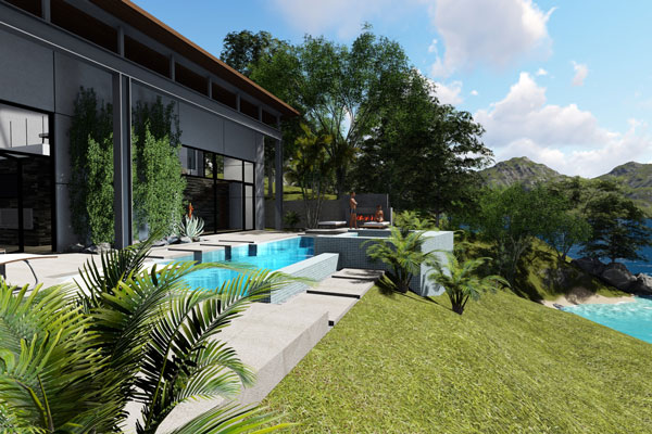 民宿景觀設(shè)計應(yīng)考慮室內(nèi)室外空間的過渡, 在出入口處打造舒適的空間與景觀銜接;觀設(shè)計需符合當?shù)貧夂颡氂刑攸c,樹種的選擇盡量就地取材,打造當?shù)靥厣?被景觀。民宿設(shè)計內(nèi)庭院需分區(qū)明確,硬質(zhì)鋪地與軟質(zhì)綠化相結(jié)合,比例協(xié)調(diào),形成舒適的活動空間; 庭院道路是市政路和建筑的連接,硬質(zhì)道路的鋪裝盡量采用親切和風情化的石材、鵝卵石或白石子,道路需融入景觀,與軟質(zhì)綠化有機相結(jié)合。