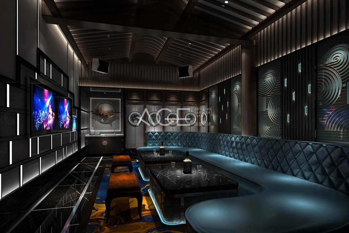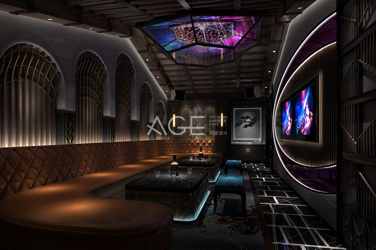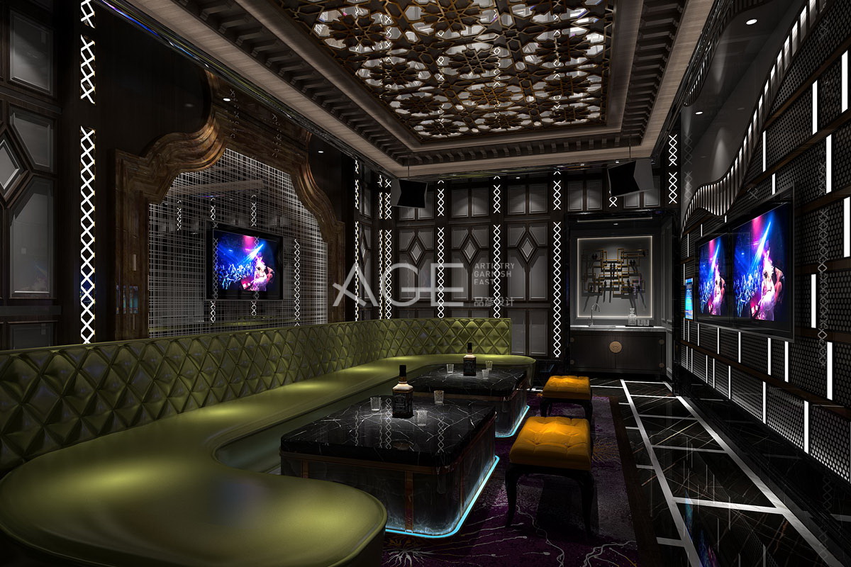 5號(hào)中包房設(shè)計(jì)細(xì)節(jié)變化在墻體和天花板上,墻體在方形中加入圓的概念,帶出濃郁的異域古典風(fēng)情,天花板線條中加入菱形設(shè)計(jì)再配以燈光效果,設(shè)計(jì)出分外美觀的造型。
