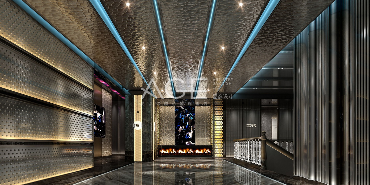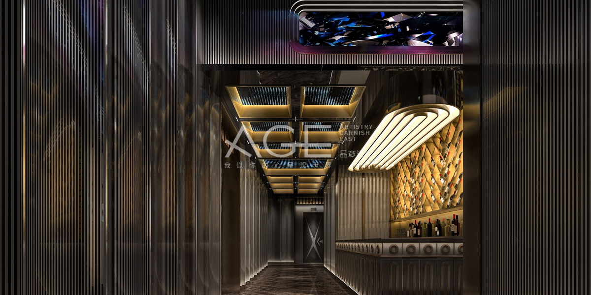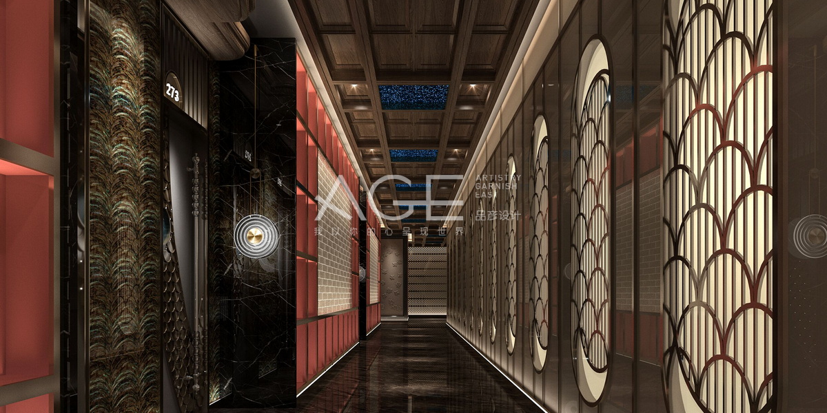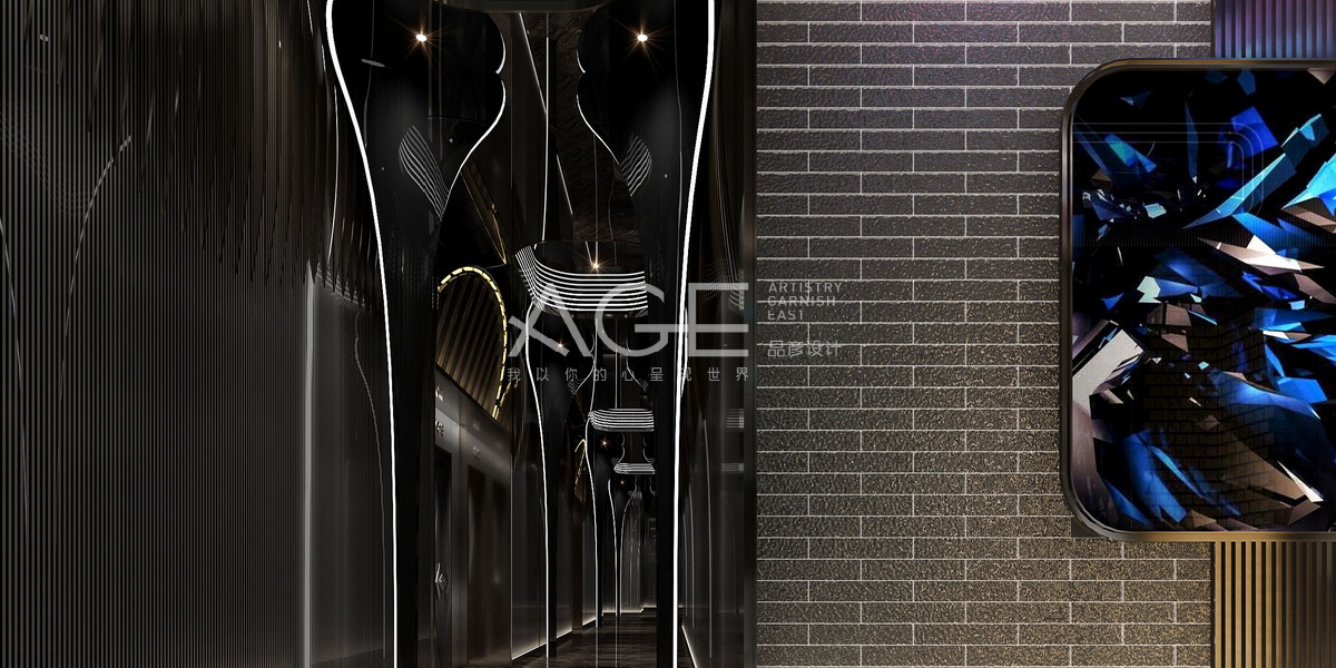 商務(wù)KTV走廊一,色彩搭配盡顯華貴之氣,一眼望去,一道亮麗的風景線。整體色調(diào)柔和,更顯瑰麗迷人,凸顯金屬材質(zhì)帶出來的精致與細膩。燈光和色調(diào)巧妙搭配,突出追求的音樂效果和動感的視覺效果。商務(wù)KTV走廊二,以暗色基點為主,盡顯神秘又不失立體感,色彩與光影的設(shè)計,凸顯細節(jié)的雕琢,加入創(chuàng)造性解構(gòu)人文素材,更讓讓藝術(shù)性與功能性有了高度的統(tǒng)一。