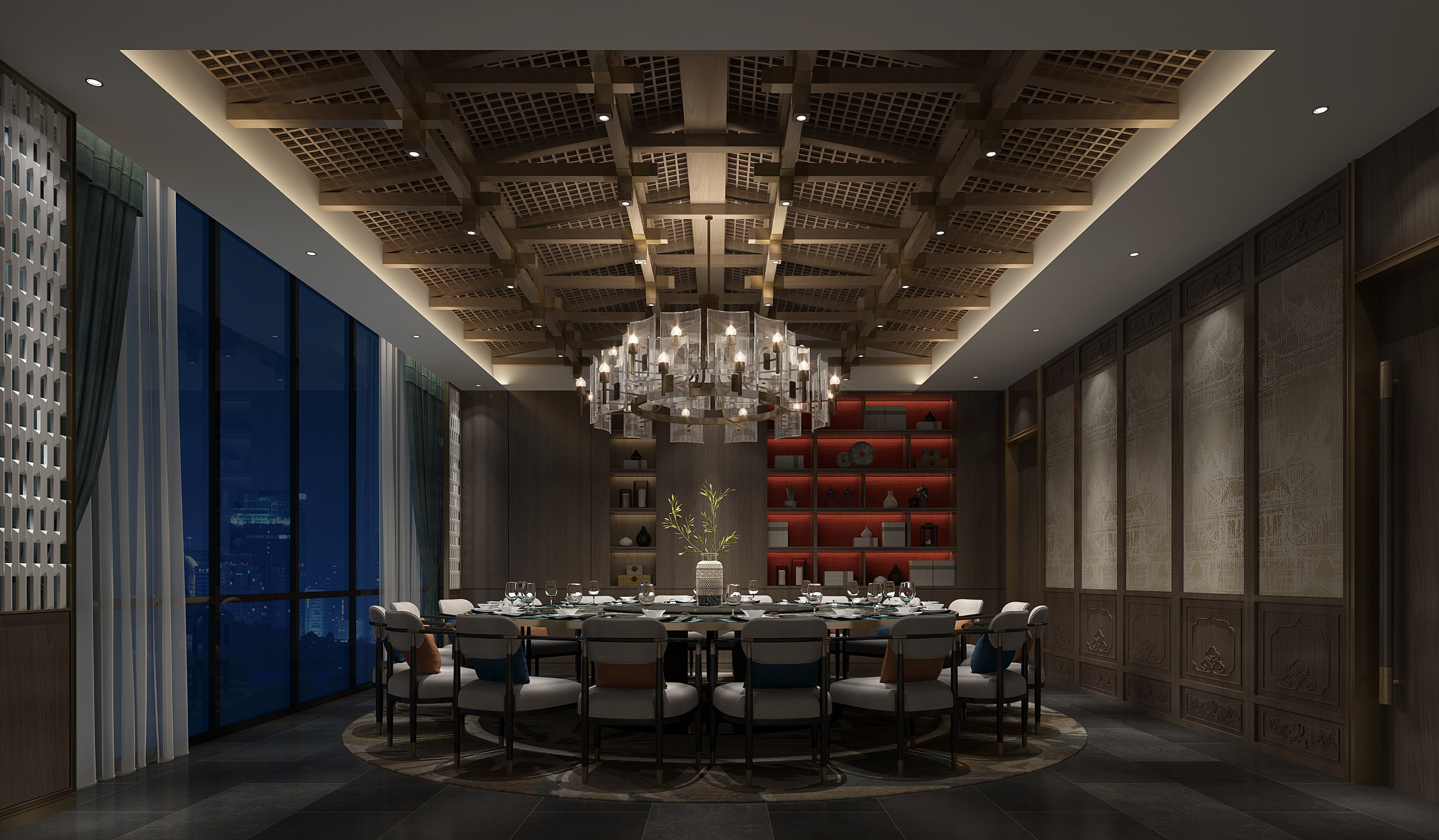 作為飲食文化源遠(yuǎn)流長(zhǎng)的古老國(guó)度,人們對(duì)于食物的追求早已超脫食物本身。除開食物最基本的味道外,消費(fèi)者更看重菜品背后潛藏的意味和底蘊(yùn),以及就餐環(huán)境的氛圍營(yíng)造。本案重慶云江餐飲會(huì)所作為當(dāng)代高端中式餐飲會(huì)所,其裝修設(shè)計(jì)的起點(diǎn)均依附于中式傳統(tǒng)經(jīng)典設(shè)計(jì)元素,讓踏入餐廳的消費(fèi)者能真切感受到濃郁的中式文化底蘊(yùn)。這種感官?zèng)_擊會(huì)直接拔高餐廳的格調(diào)檔次,提升食物帶來(lái)的味蕾體驗(yàn)。