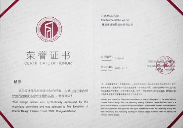 2006中國(深圳)第二屆室內(nèi)設(shè)計優(yōu)秀作品展-酒吧類-銅獎