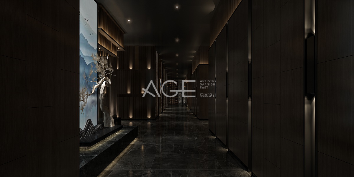走廊色彩使用上更為清新淡雅,給人一種自由輕松之感。一側(cè)墻體整體設(shè)計立體感十足,用燈光細(xì)化出層次感,而對面一側(cè)墻體在設(shè)計中加了一處明亮背景的景觀欣賞,走廊地板采用的是錯落有序的塊狀大理石地面,放眼望去整體走廊是一派高貴之氣。