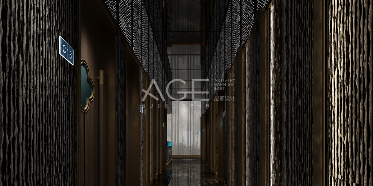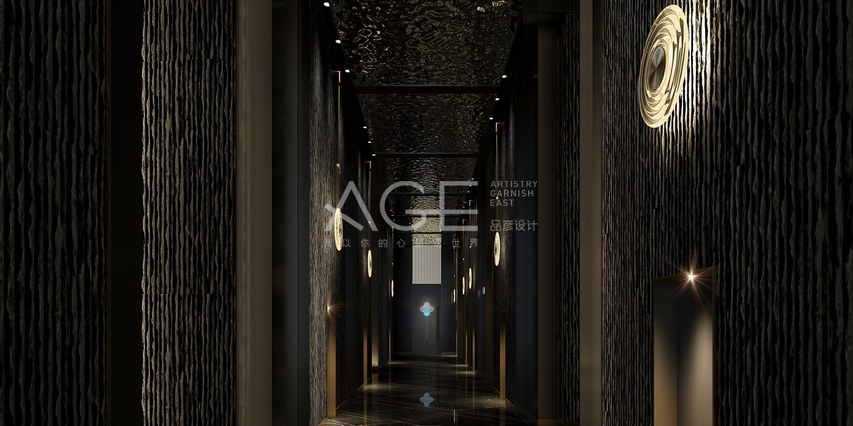 一號-走廊的設計風格具有高貴中的低調奢華,暗色系帶出的是神秘感,兩側墻體對稱設計,上方的方形和下方的一體設計形成空間的層次感,即時髦又精致還不失高貴之氣。二號-走廊整體設計延續(xù)大堂風格,棕色中帶有黃色點綴更顯神秘十足,地板加入線條元素更具有精致的美。三號-走廊整體設計大氣又高貴,深色調帶出幾分神秘,加入線條的地板與墻體圓形柱形成不規(guī)則的立體感。
