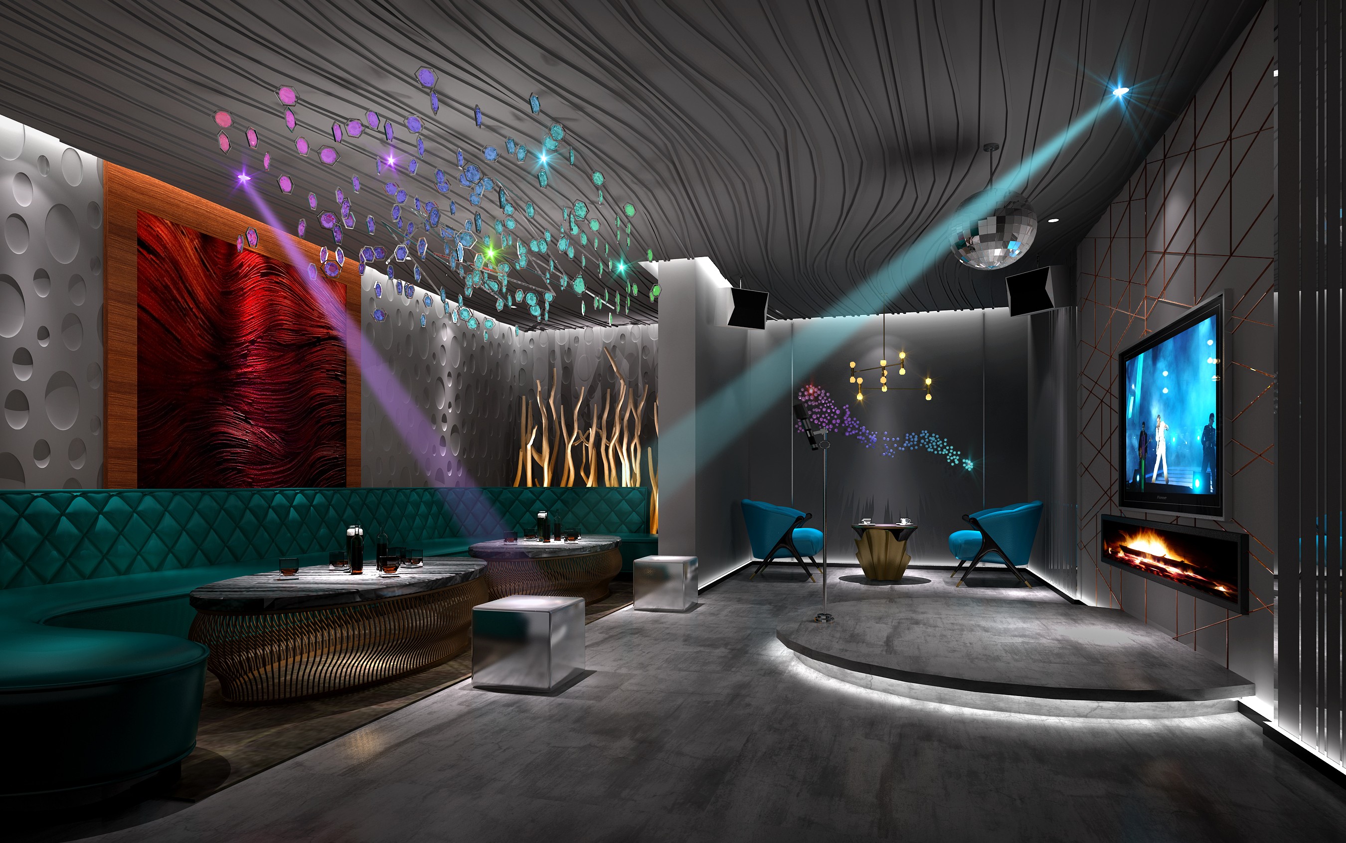 包房設(shè)計(jì)采用多元素碰撞表現(xiàn)形式,設(shè)計(jì)師通過立體線條的不同表達(dá)和如繁星垂吊的璀璨亮片,再通過燈光的照耀襯托,使得整體設(shè)計(jì)在實(shí)際使用時(shí)會(huì)呈現(xiàn)出美輪美奐的夢(mèng)幻美感。同時(shí)在細(xì)節(jié)設(shè)計(jì)上,設(shè)計(jì)師為不浪費(fèi)空間,采用了兩種截然不同的地板進(jìn)行拼合,在感官上將包房?jī)?nèi)的不同功能區(qū)清晰劃分出來。