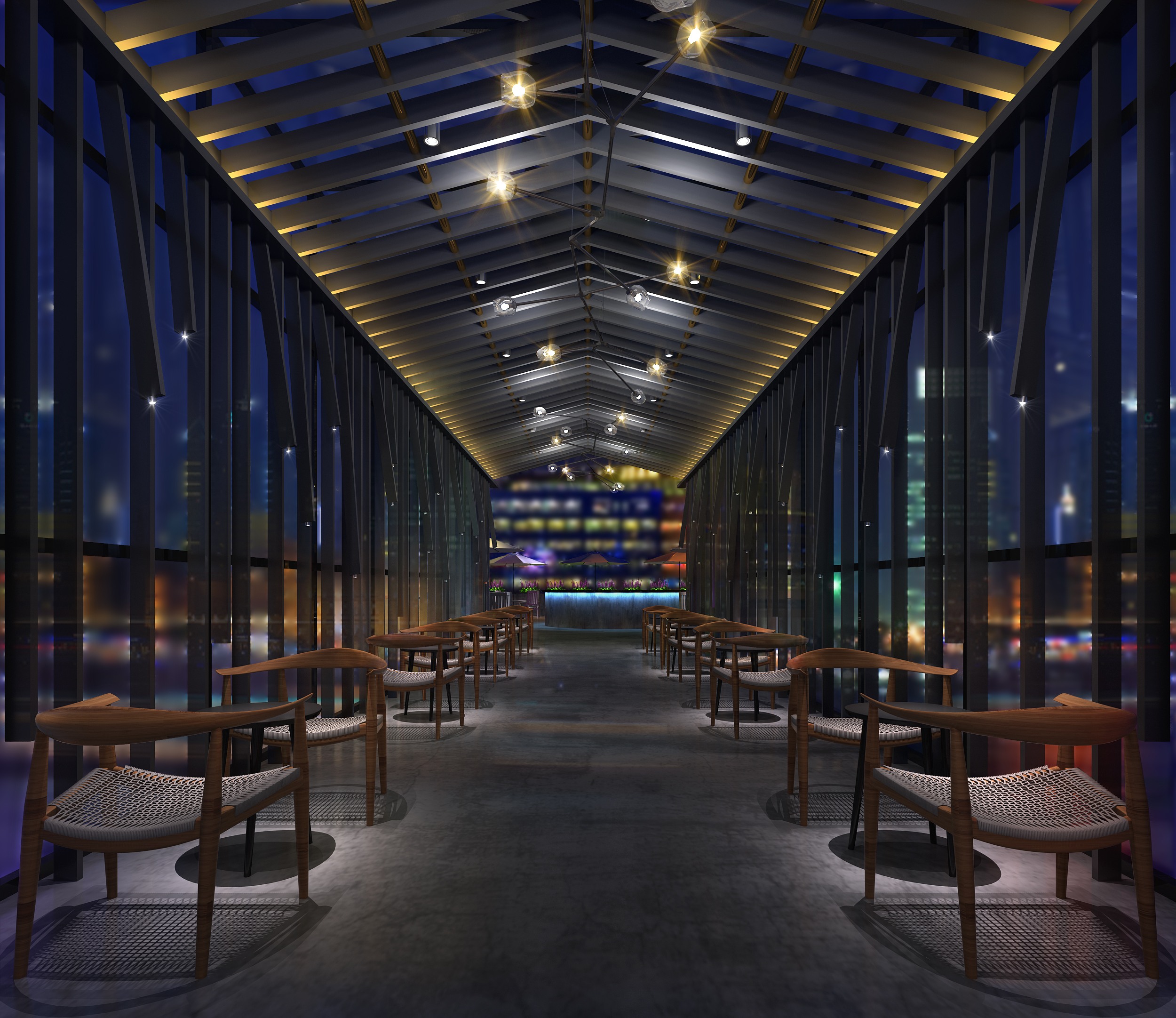 連廊設(shè)計(jì),設(shè)計(jì)師因地制宜,采用大面積落地玻璃,在視覺感官上拓寬空間感的同時(shí),減少連廊空間帶來的逼仄壓迫。同樣受限于連廊的空間面積,在整體裝修設(shè)計(jì)上,設(shè)計(jì)師采用簡(jiǎn)約的設(shè)計(jì)手法,用現(xiàn)代建材的齊整排列帶來規(guī)整的設(shè)計(jì)美感。另外,在細(xì)節(jié)處,設(shè)計(jì)師通過布置點(diǎn)點(diǎn)星燈與外圍的景色相互映襯,鋪就朦朧的奇妙夢(mèng)幻感。