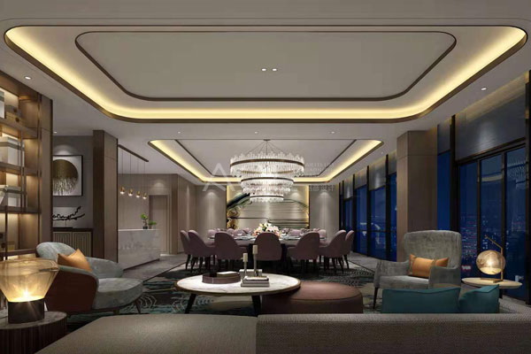 首先是色彩對酒店設計的影響,冷暖色彩具有一定的進退感,暖色使人感到靠近和向前,而冷色則使人感覺退遠和向后,因此,暖色調(diào)使空間看起來有縮小之感,而冷色調(diào)的空間看起來比原來略大。色彩的輕重感對酒店室內(nèi)空間的規(guī)劃也具有重要的意義。一般人的心理都有默認的穩(wěn)定原則,即上輕下重。色彩明度越高(即淺色)給人越輕之感,明度越低(即深色)則使人感覺越重。因此,在酒店室內(nèi)設計中,一般多遵循上淺下深的原則。